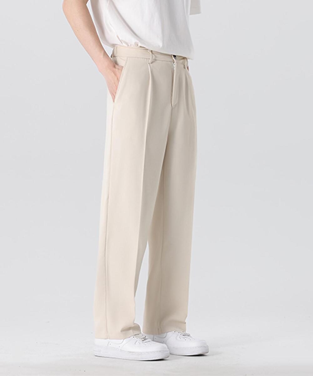 シンプルで着回し力の高いベーシックなストレートパンツ。ゆるやかなシルエットが日常使いにちょうど良い抜け感で幅広いスタイルに◎。一枚あると便利なアイテムです。