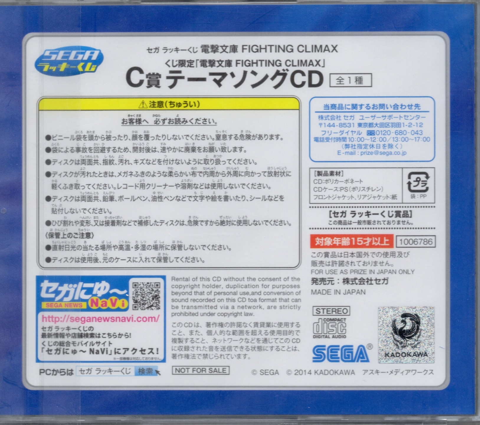 ゲームCD くじ限定 電撃文庫FIGHTING CLIMAX テーマソングCD ※未開封