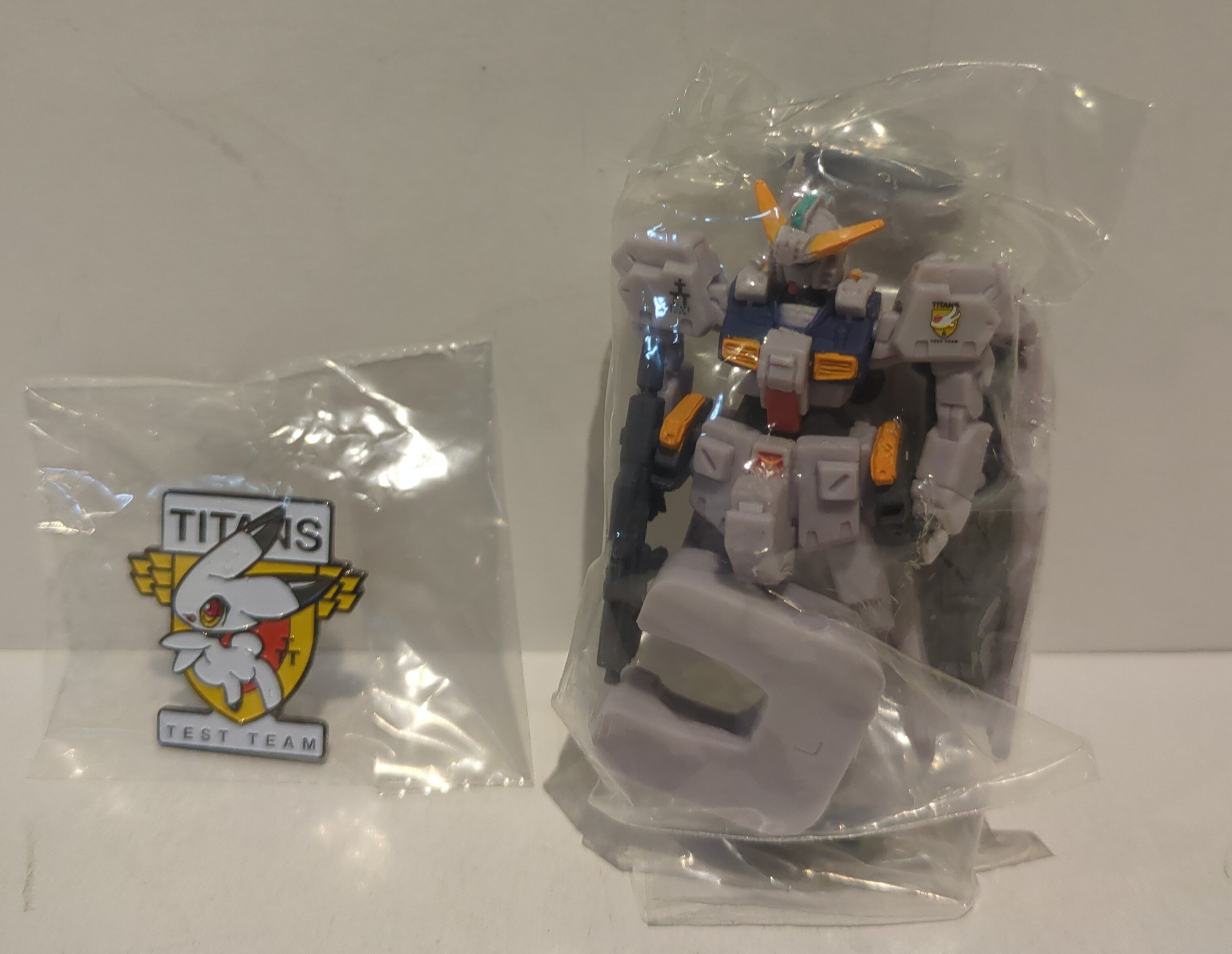 「MSセレクション ガンダムヘイズル改」と「マーフィー小隊部隊章ピンズ」