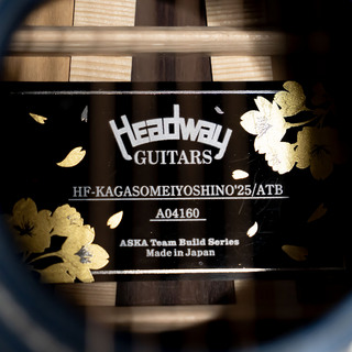 指板インレイに入る桜の花弁には、ソメイヨシノの淡い花の色をイメージした薄桃色の素材をあしらい、桜ギターならではの可憐で上品な表情を添えています。