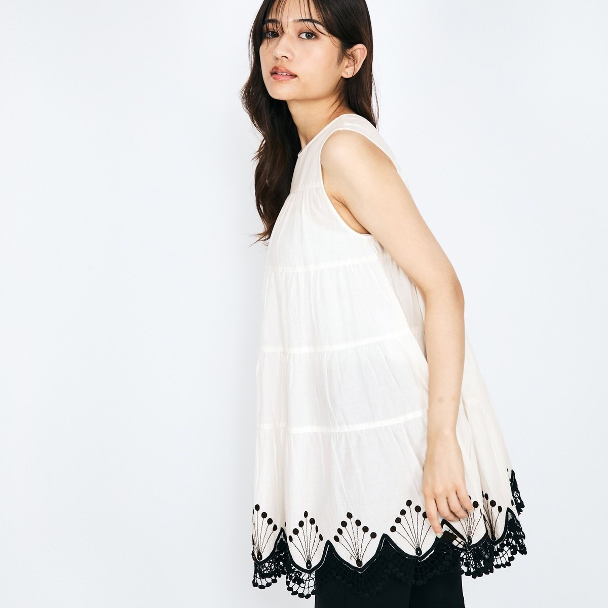 フラワー刺繍スカラップレースチュニック
