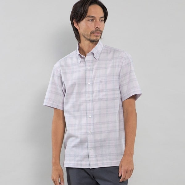 半袖シャツ/3/コットン/GRY/チェック/BMW21-902/ボタンダウンシャツ/ノバチェック/グレー