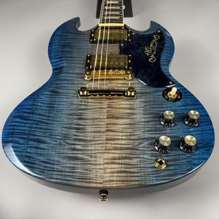 レギュラーラインナップにはない”MSG”モデルをベースに、本モデルでは贅沢にもトップ材とバック材の割合が等しい「ハーフハーフ仕様」を採用。トチ材とアフリカンマホガニーの組み合わせによる音響特性にも注目です。