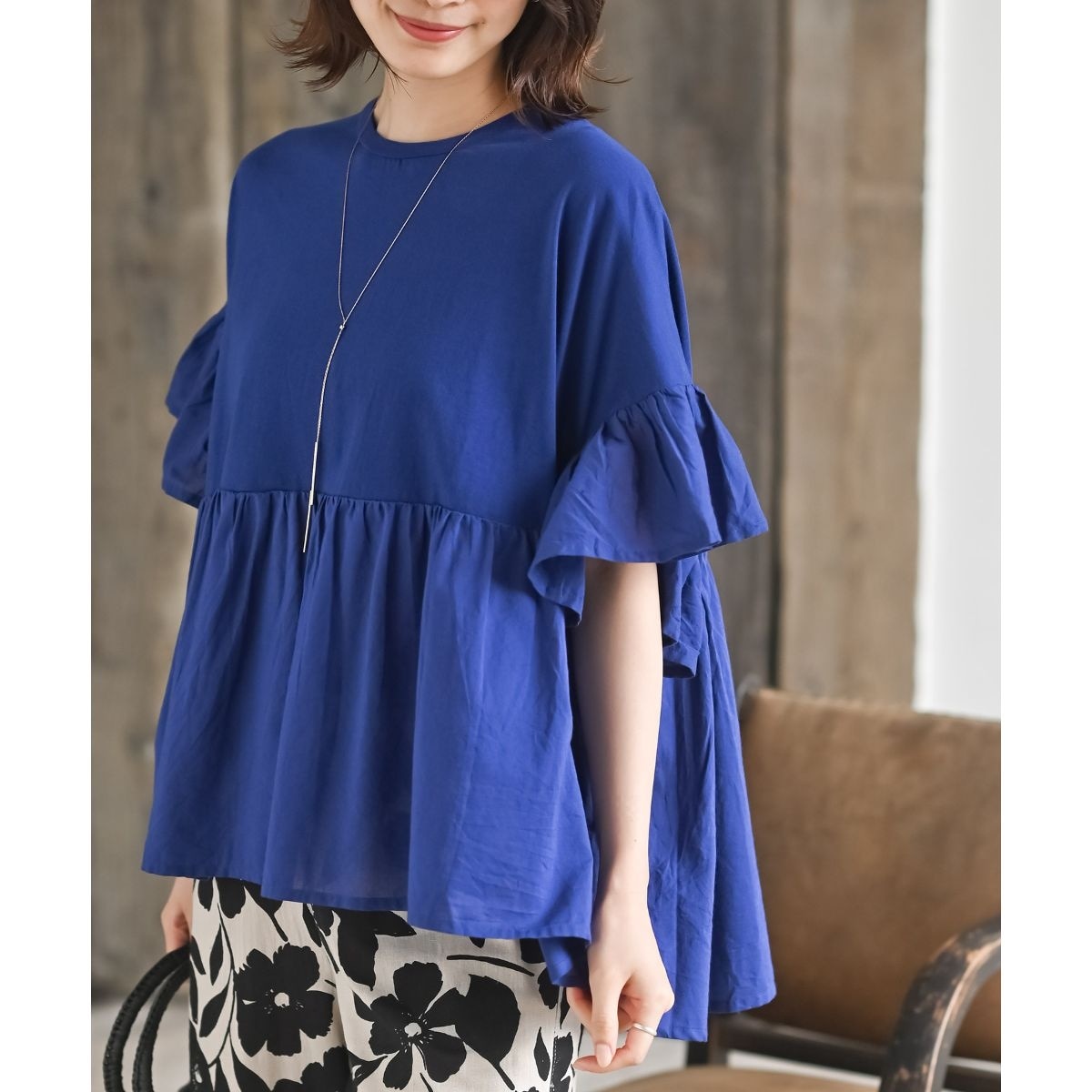 rps アールピーエス 布帛×カット切替フレアー袖プルオーバー