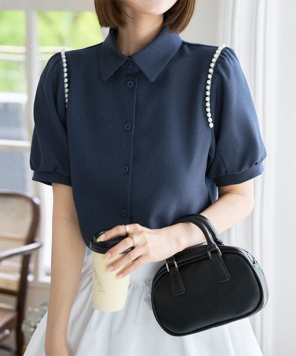 パールボタン ブラウス 2XL_S0742