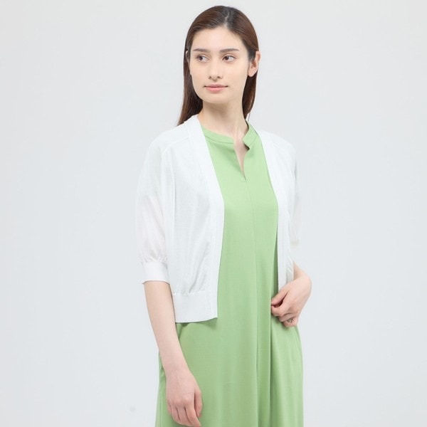 <嬉しい機能と美しいシルエットを併せもつニットボレロ>