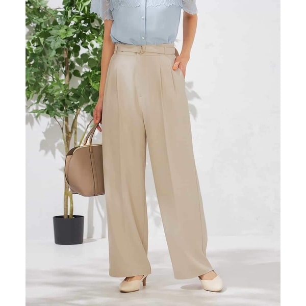 【洗える】ベルト付きイージーケアワイドパンツ