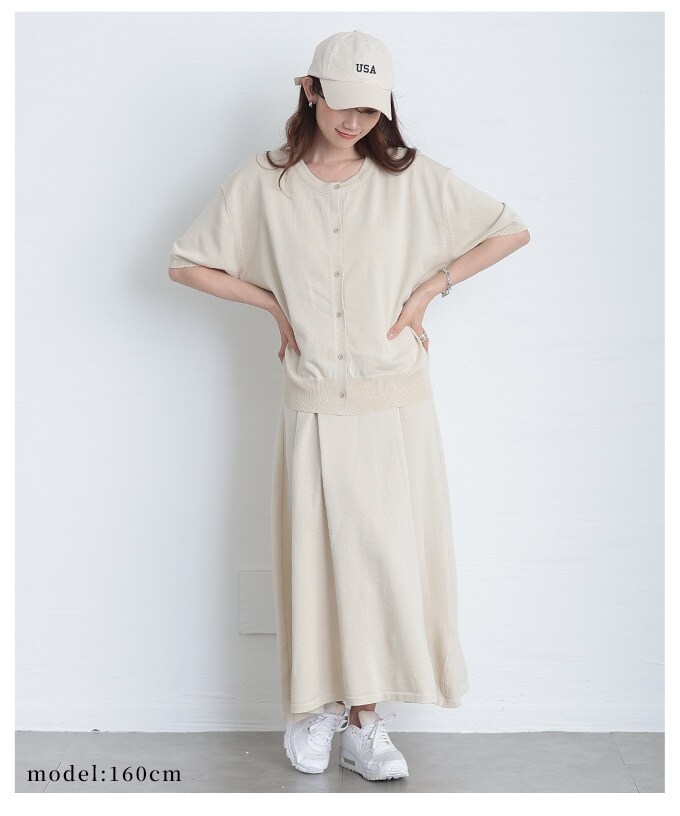 日常をクラスアップさせるニットカーデ&ワンピース2点セット。ニットカーデとニットワンピースがセットになったアイテム。シンプルなので単品でもセットでも幅広く着まわせます。さらりと心地よいサマーニット素材なので長い季節着用できます。カジュアルにも綺麗めにも着こなせる万能セットです。