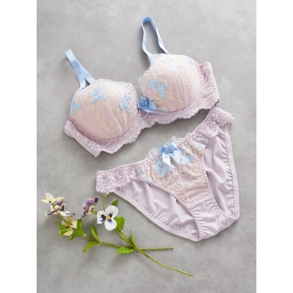 可憐なフラワーモチーフとアーチを描くデザインに心ときめくブラショーツセット。