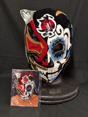 プロレスマスク PUKUPUKU工房製【マスクド・デビロック/棚橋弘至(銀ラメ×赤フチ)】 タグ付き