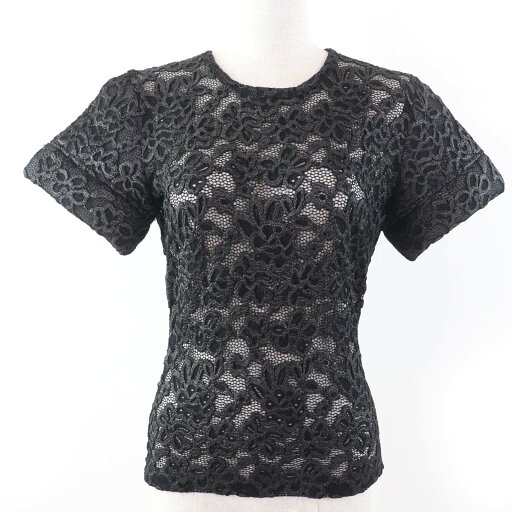 良品☆HERMES エルメス コットン100% シェーヌダンクル刺繍ポケット 半袖Tシャツ トップス ブラック 36 フランス製 正規品 レディース【中古】