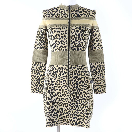 極美品☆Christian Dior クリスチャンディオール ヴィンテージ ウール コットン 総柄デザイン 長袖 ワンピース パープル系 7 レディース【中古】