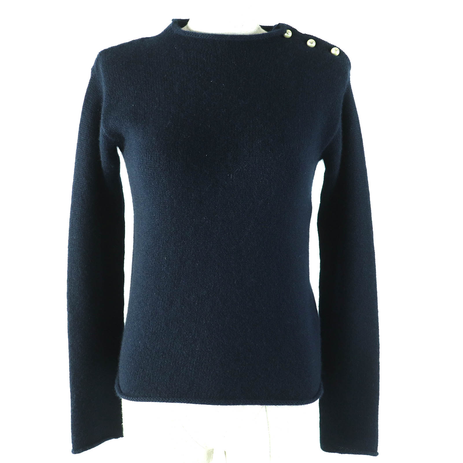 未使用品☆HERMES エルメス 3E2608D5 カシミヤ コットン 長袖 クルーネック ニット トップス パープル 38 イタリア製 レディース【中古】
