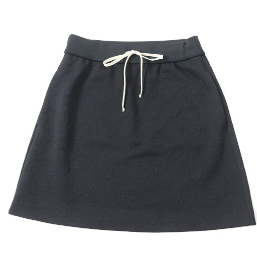 極美品☆GUCCI グッチ 747361 GG ヴィスコースクレープ スカート ブラック XS ハンガー付き イタリア製 正規品 レディース【中古】