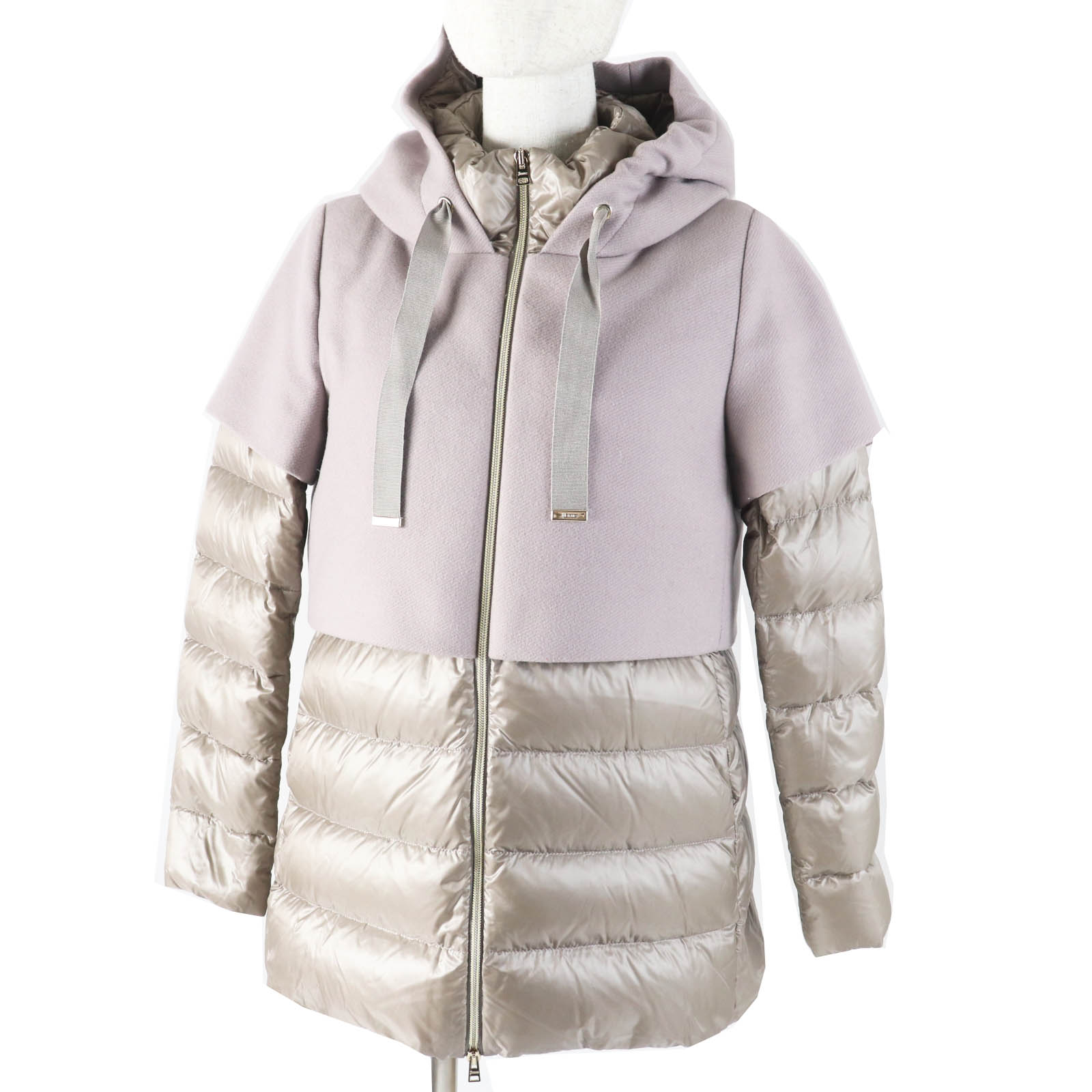 極美品▲HERNO Resort ヘルノ リゾート PI00080UR ロゴ金具 フード付き ダウンジャケット ベージュ 44 正規品 メンズ【中古】