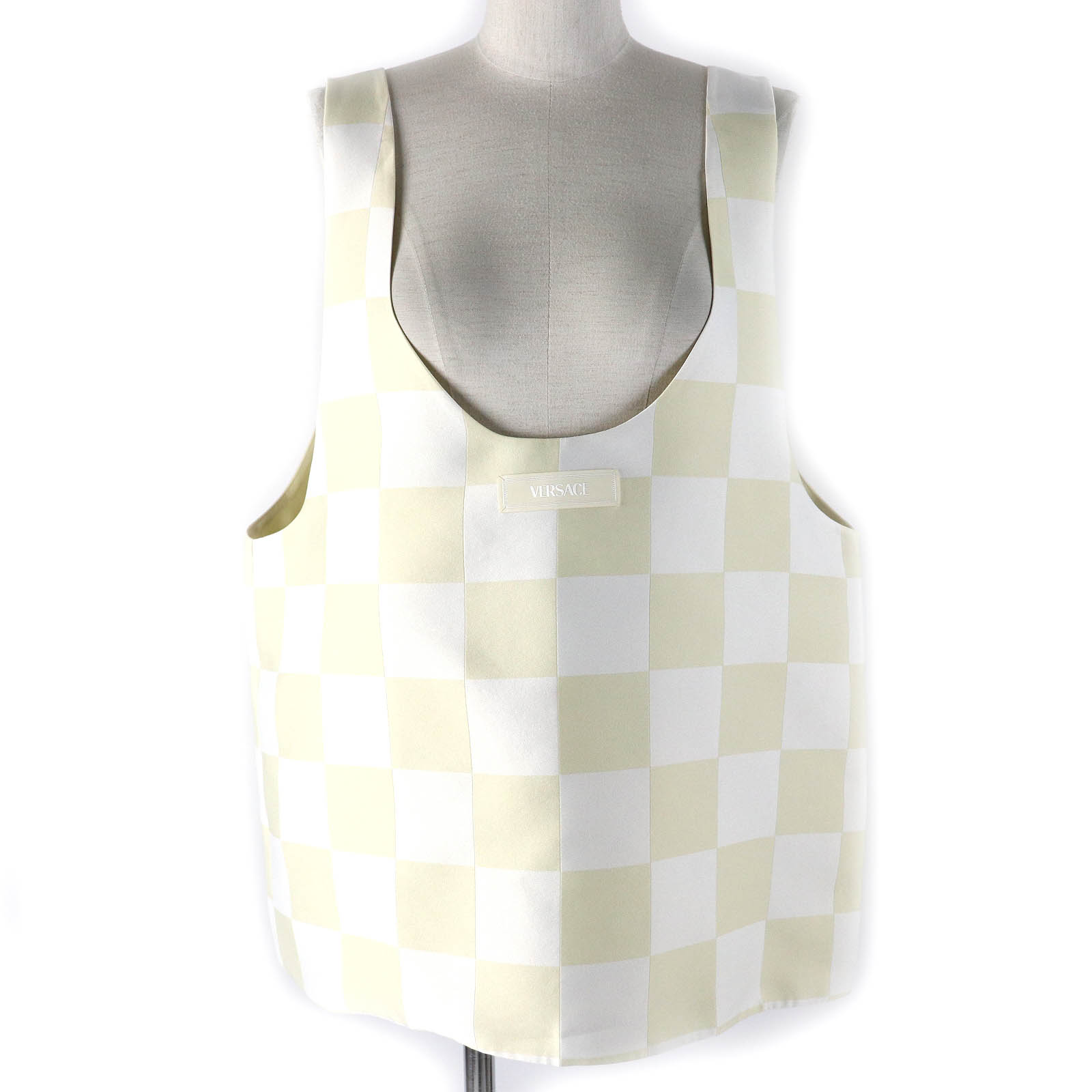 【ドンドン見直し】未使用品△VERSACE ヴェルサーチ 2023年製 シルク混 ブロックチェック ノースリーブ トップス ベージュ ホワイト系 M イタリア製 レディース