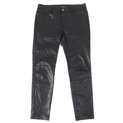 美品 CHANEL シャネル P44709 ココマークボタン付き ロング丈 ベロア パンツ ブラック 34 イタリア製 正規品 レディース【中古】