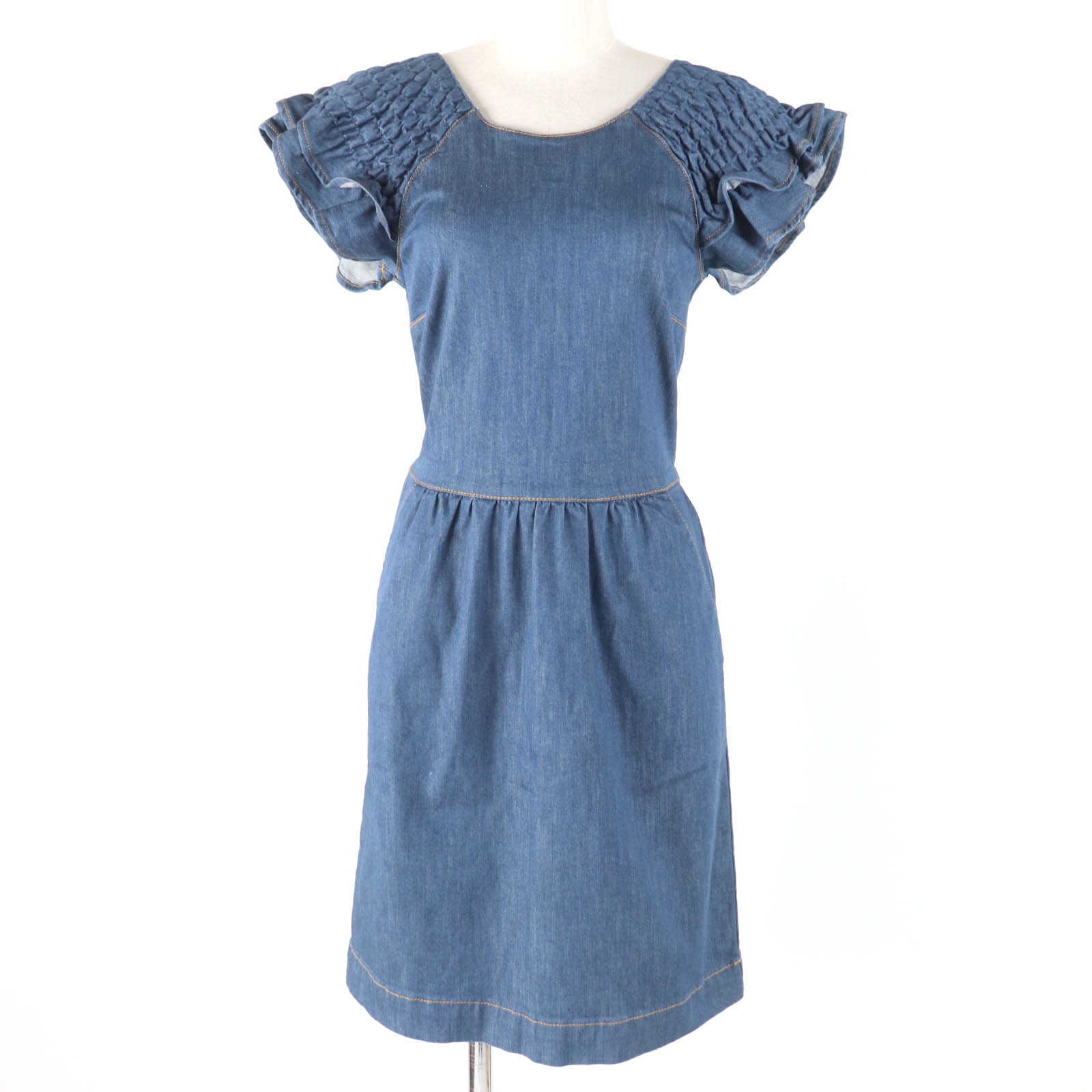 美品RED VALENTINO 水色 襟付き パフスリーブ ワンピース