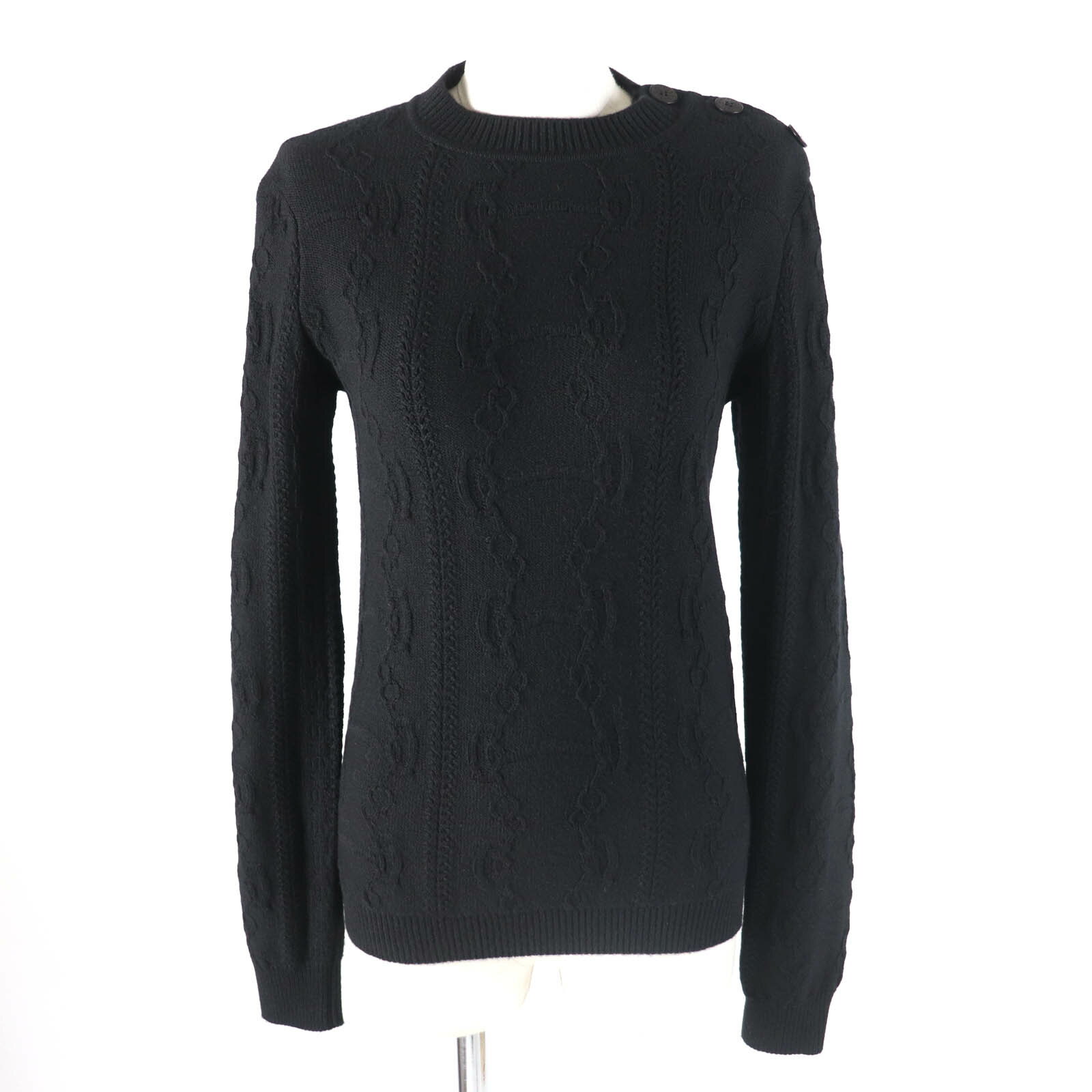極美品△HERMES エルメス コットン100% セリエボタン ハーフジップ プルオーバー パーカー ブラック S フランス製 正規品 レディース【中古】
