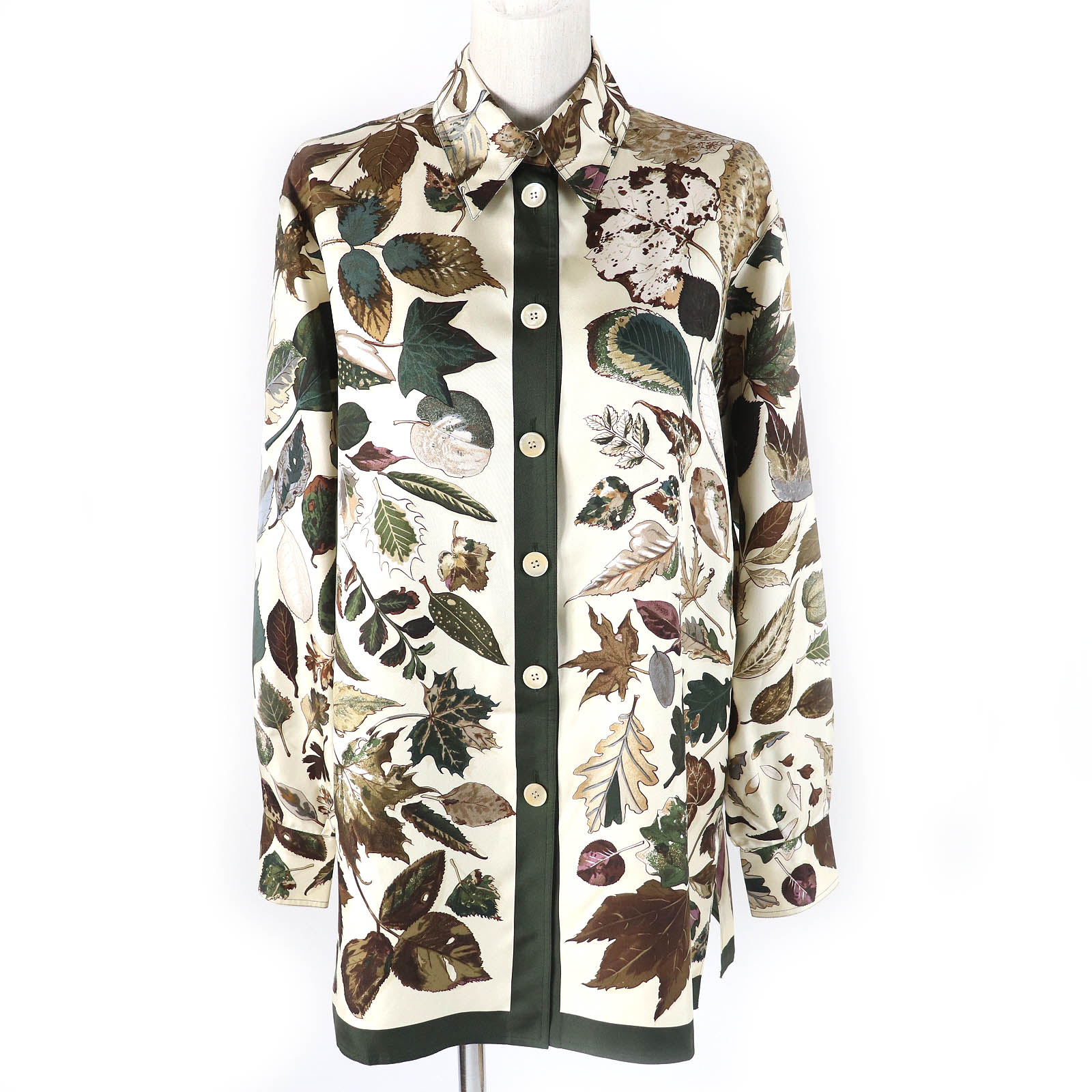 美品▲HERMES エルメス シルク コットン 長袖 ニットシャツ カーディガン オレンジ SM イタリア製 正規品 レディース【中古】