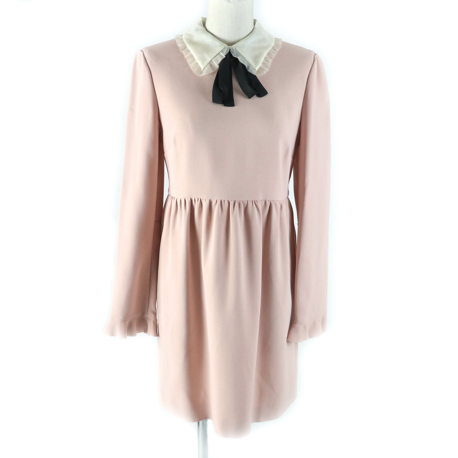 極美品【RED VALENTINO|レッドヴァレンティノ】ショルダーリボン パフスリーブ 羊毛ワンピース ピンク ニットワンピース S 即決