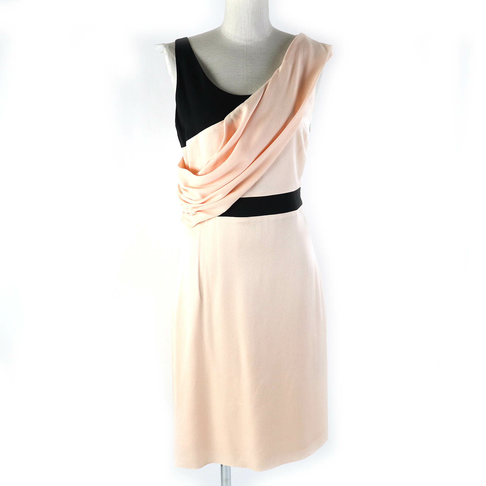 【ドンドン見直し】未使用品△LANVIN ランバン バイカラー ノースリーブ ドレス ワンピース 裏地シルク100% ピンクベージュ ブラック 36 フランス製 正規品 レディース オススメ◎ 定価316,800円