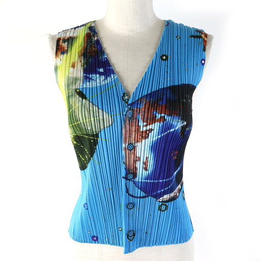 美品 PLEATS PLEASE ISSEY MIYAKE プリーツプリーズ イッセイミヤケ タタミメッシュ ボレロカーディガン PP61-F0262 ブルー レディース 古着 中古 USED
