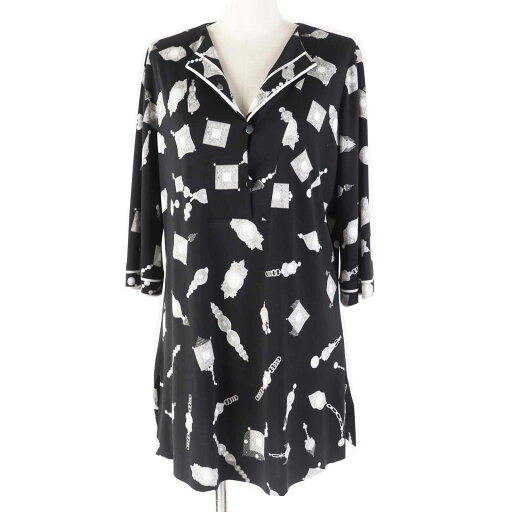 極美品☆LEONARD FASHION レオナール ファッション 0330802 コットン100% 総柄 ノースリーブ ワンピース ブラック 40 日本製 正規品 レディース【中古】