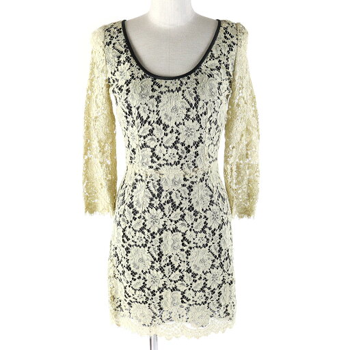 未使用品◎DOLCE&GABBANA ドルチェ&ガッバーナ レース×チェック ドッキング ワンピース ブラック ブラウン 36 イタリア製 正規品 レディース【中古】
