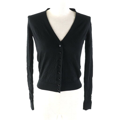 極美品△HERMES エルメス ウール100% シルバー金具 セリエボタン付き ハーフジップ 半袖シャツ トップス ブラック M フランス製 正規品 レディース【中古】