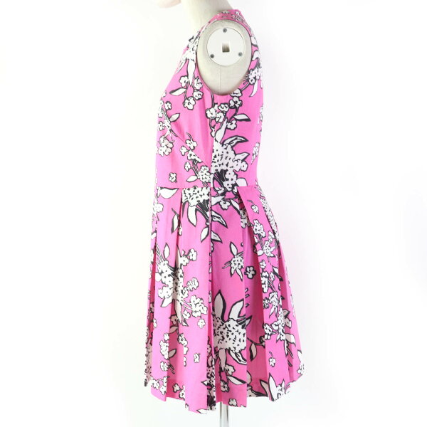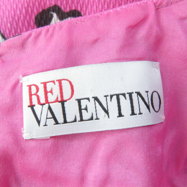 極美品△RED VALENTINO レッドヴァレンティノ チュール付き 半袖 裾フレア ワンピース レッドピンク系 ブラック 42 正規品 レディース 大人可愛い オススメ◎【中古】