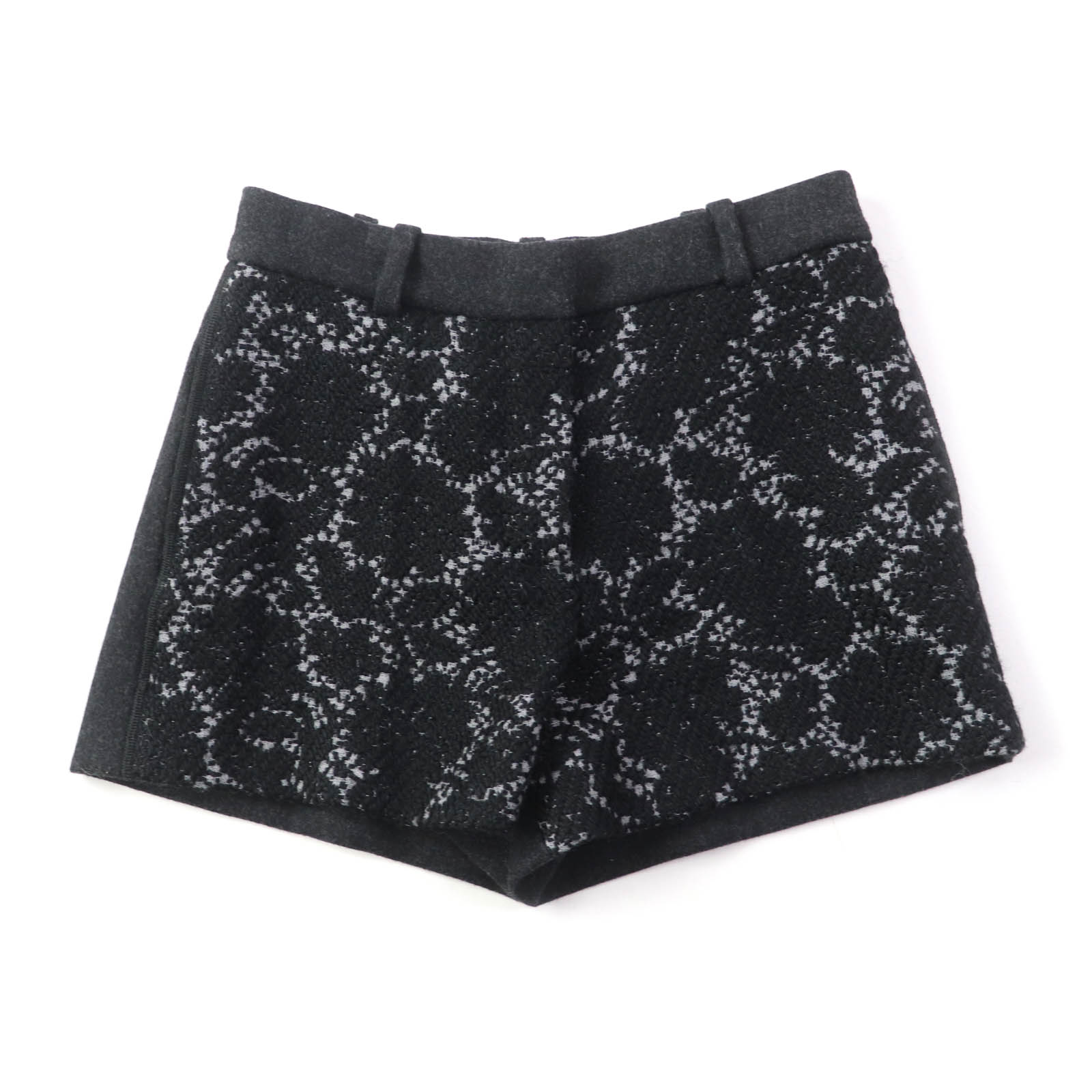 美品△LOUIS VUITTON ルイヴィトン シルク混 モノグラムフラワー ドット柄 バックジップ ミニ フレアスカート アイボリー ブラック XS イタリア製 正規品 レディース【中古】