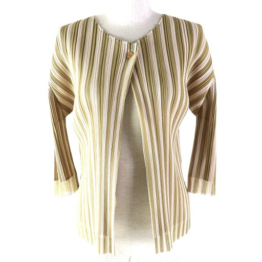 極美品▲PLEATS PLEASE プリーツプリーズ イッセイミヤケ PP51-F0253 メッシュ カーディガン ホワイト 3 日本製 正規品 レディース【中古】