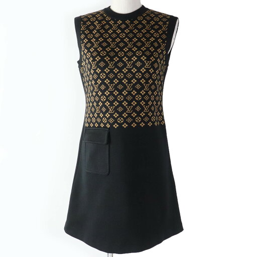 美品△LOUIS VUITTON ルイヴィトン シルク混 モノグラムフラワー ドット柄 バックジップ ミニ フレアスカート アイボリー ブラック XS イタリア製 正規品 レディース【中古】