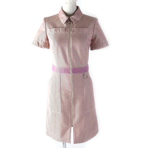 美品☆HERMES エルメス シルク100% ツイルレーヌ 長袖 ワンピース アイボリー ピンク 34 フランス製 正規品 レディース【中古】