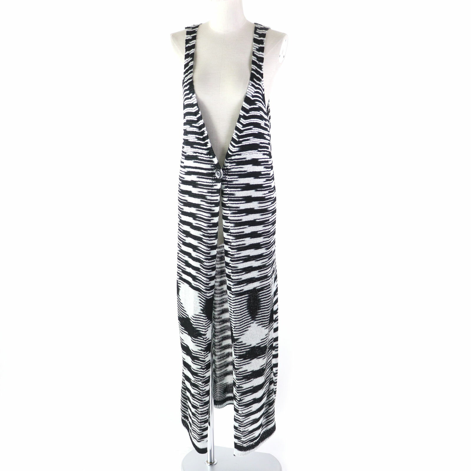 未使用品★Missoni ミッソーニ 総柄 Vネックカーディガン+ノースリーブワンピース アンサンブル ブラック ホワイト 40 イタリア製 正規品 レディース【中古】