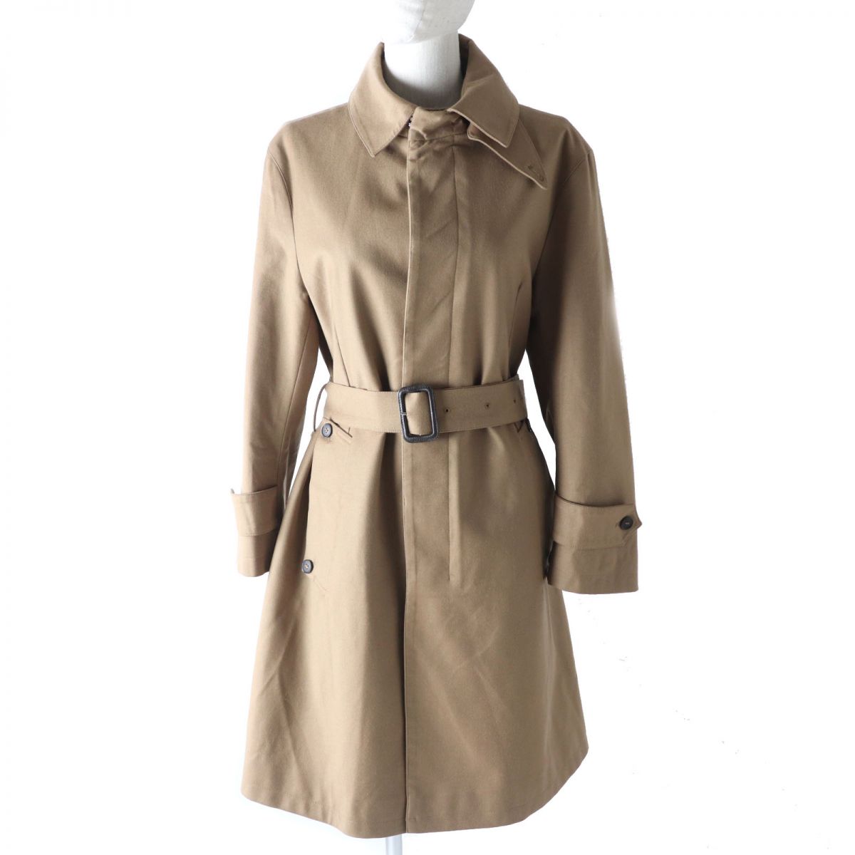 【ドンドン見直し】極美品☆正規品 DRAWER ドゥロワー 6525-234-0652 メルトン ウール リバーノーカラーコート Aライン ベルト付き グリーン 34