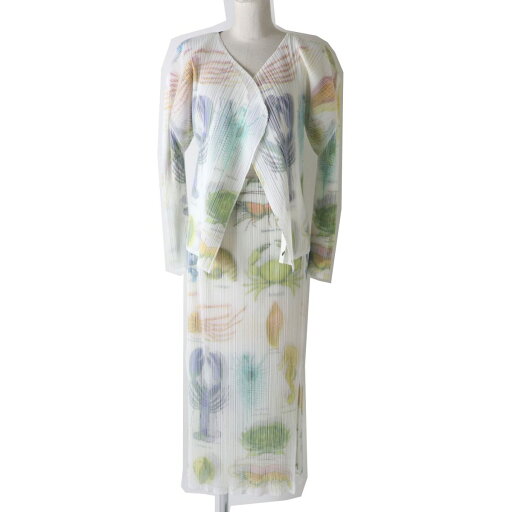 【ドンドン見直し】極美品☆正規品 LEONARD FASHION レオナール ファッション 総柄 ノースリーワンピース/カーディガン 2点セット セットアップ 黒×白 40
