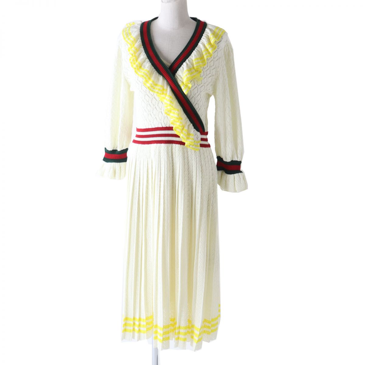 【ドンドン見直し】極美品◎正規品 イタリア製 AlexanderMcQueen アレキサンダーマックイーン 507776 長袖 オフショルダー ワンピース ストライプ柄 紫×白 42【中古】