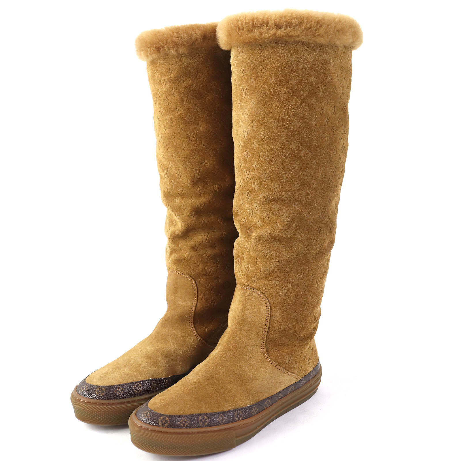 極美品★LOUIS VUITTON ルイヴィトン スノーボールライン モノグラム柄 ロング ムートンブーツ ブラウン 36.5 イタリア製 レディース【中古】
