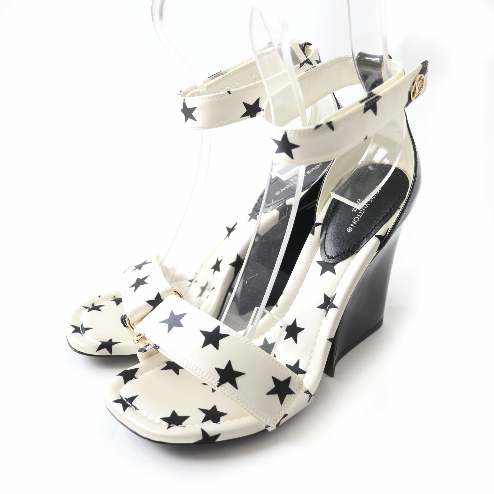 極美品★LOUIS VUITTON ルイヴィトン アイコンロゴ スクエアトゥ ストラップ レザー サンダル ブラック 35 イタリア製 レディース【中古】