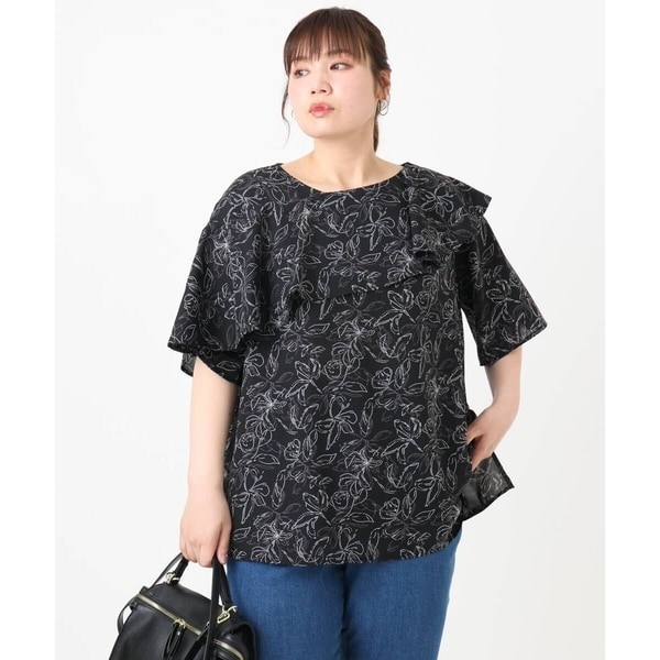 Leilian フリル シアー 花柄 シャツ ブラウス 大きいサイズ