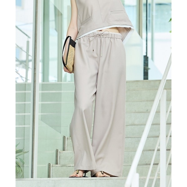 ウエスト部分に配色の別地をあしらった、今季らしいデザインイージーパンツ。