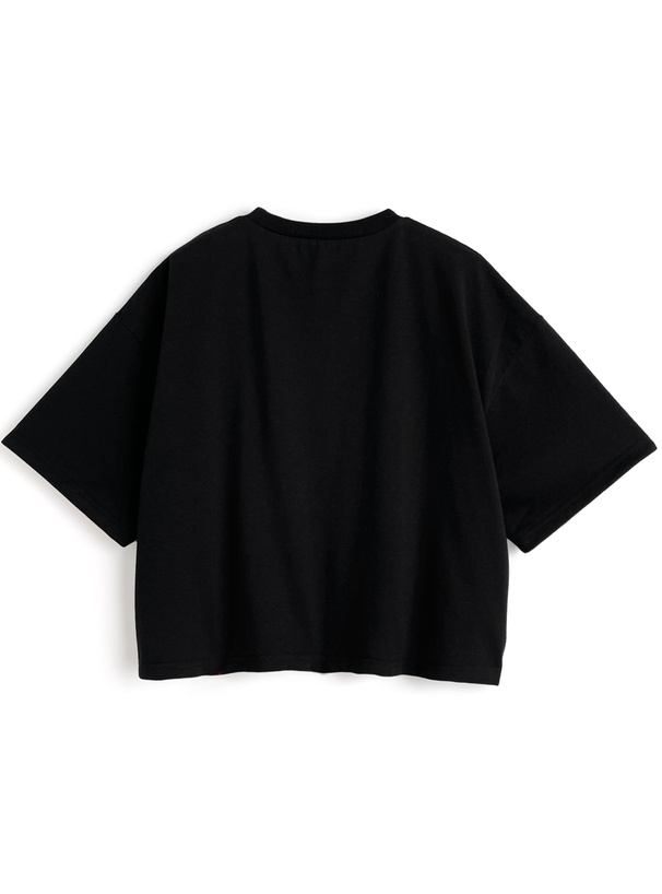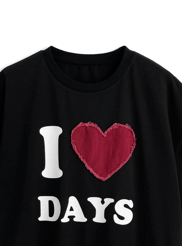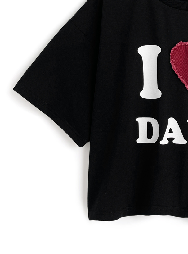 大胆なロゴとツイル生地を縫い付けた立体感のあるハートモチーフが目を惹くTシャツ。