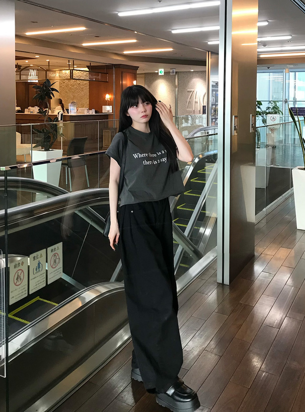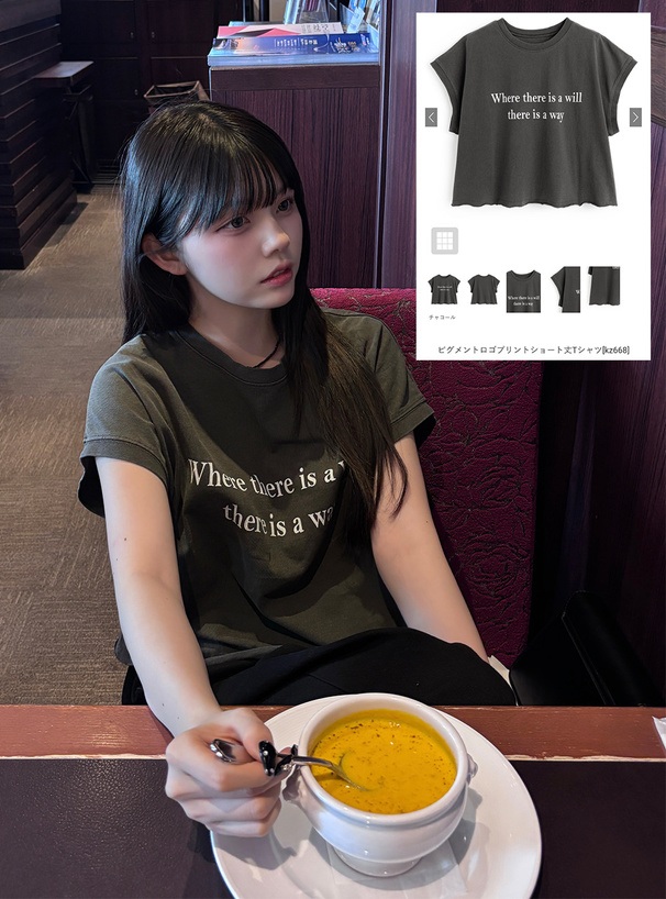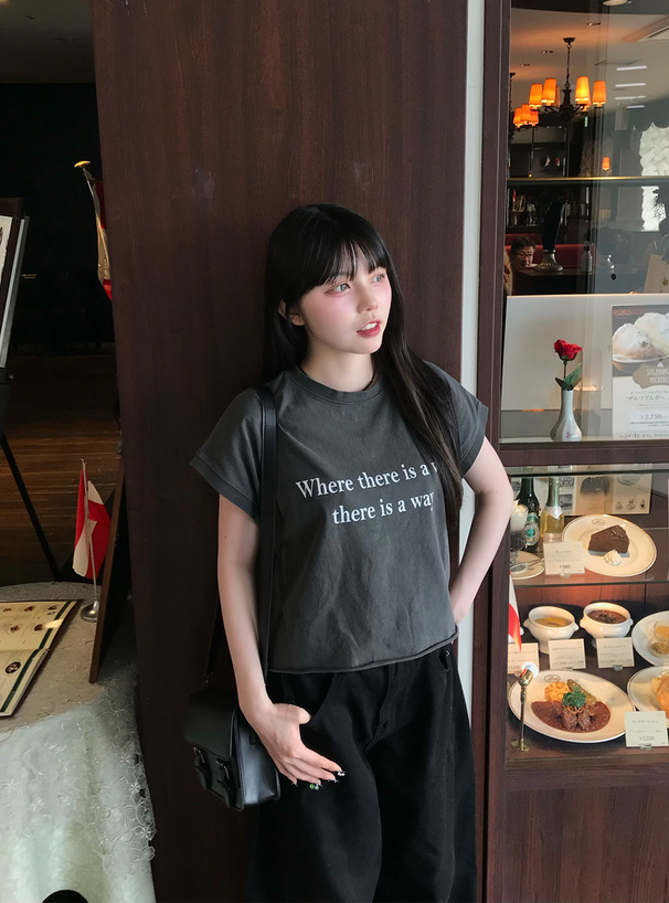 2Wayピグメントロゴクロップド丈Tシャツ[kz667]