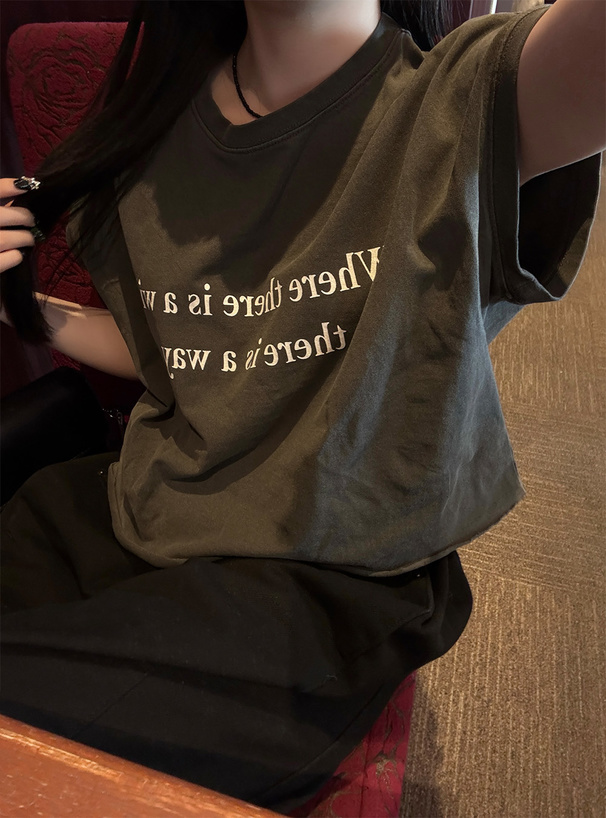 ロゴプリントメタリックショート丈Tシャツ[kz511]
