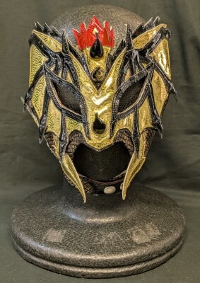プロレスマスク 【ドラゴン・ベイン(緑特殊×金・黒・緑・メタリックフチ)】 タグなし 本人使用