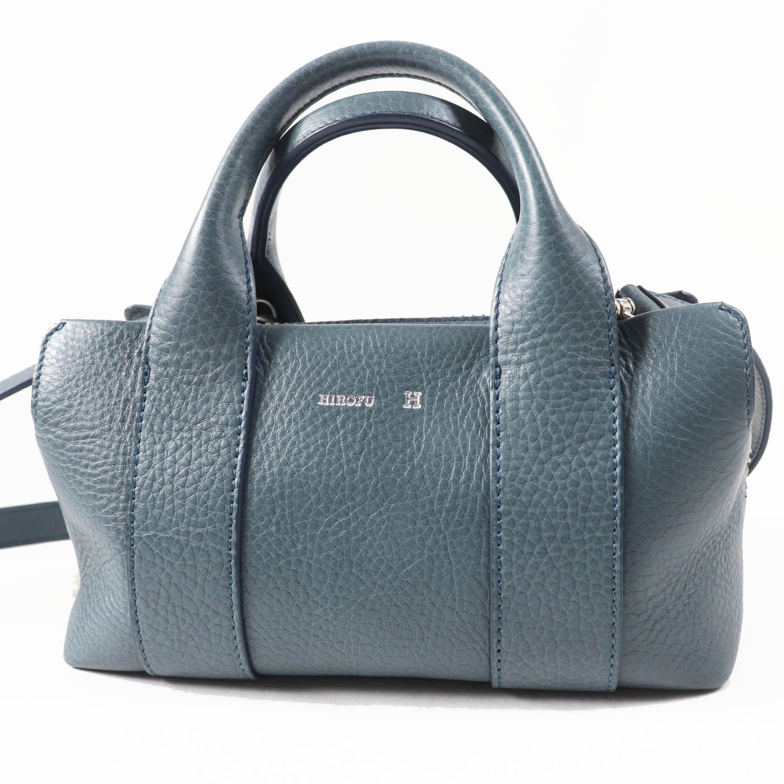 極美品☆HIROFU ヒロフ 13972V ロゴ刻印入り レザーショルダーバッグ ハンドバッグ トートバッグ ダークブルー イタリア製 レディース【中古】