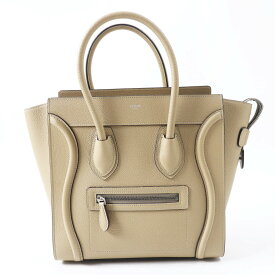 極美品◎CELINE セリーヌ 18979 ラゲージ マイクロ ショッパー デューン(ベージュ) ドラムドカーフスキン ハンドバッグ イタリア製 レディース【中古】