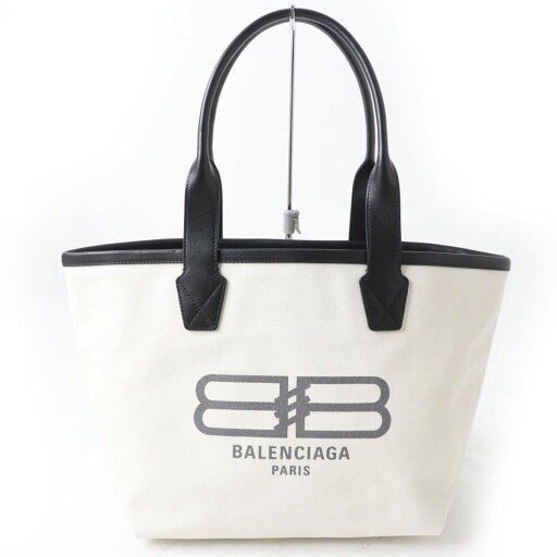 【ドンドン見直し】極美品☆BALENCIAGA バレンシアガ 692068 JUMBO ジャンボ ロゴ入りトートバッグ スモール アイボリー×ブラック レディース 保存袋付き